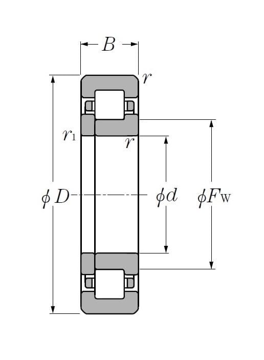 Роликовый цилиндрический подшипник (серия NUP) 309